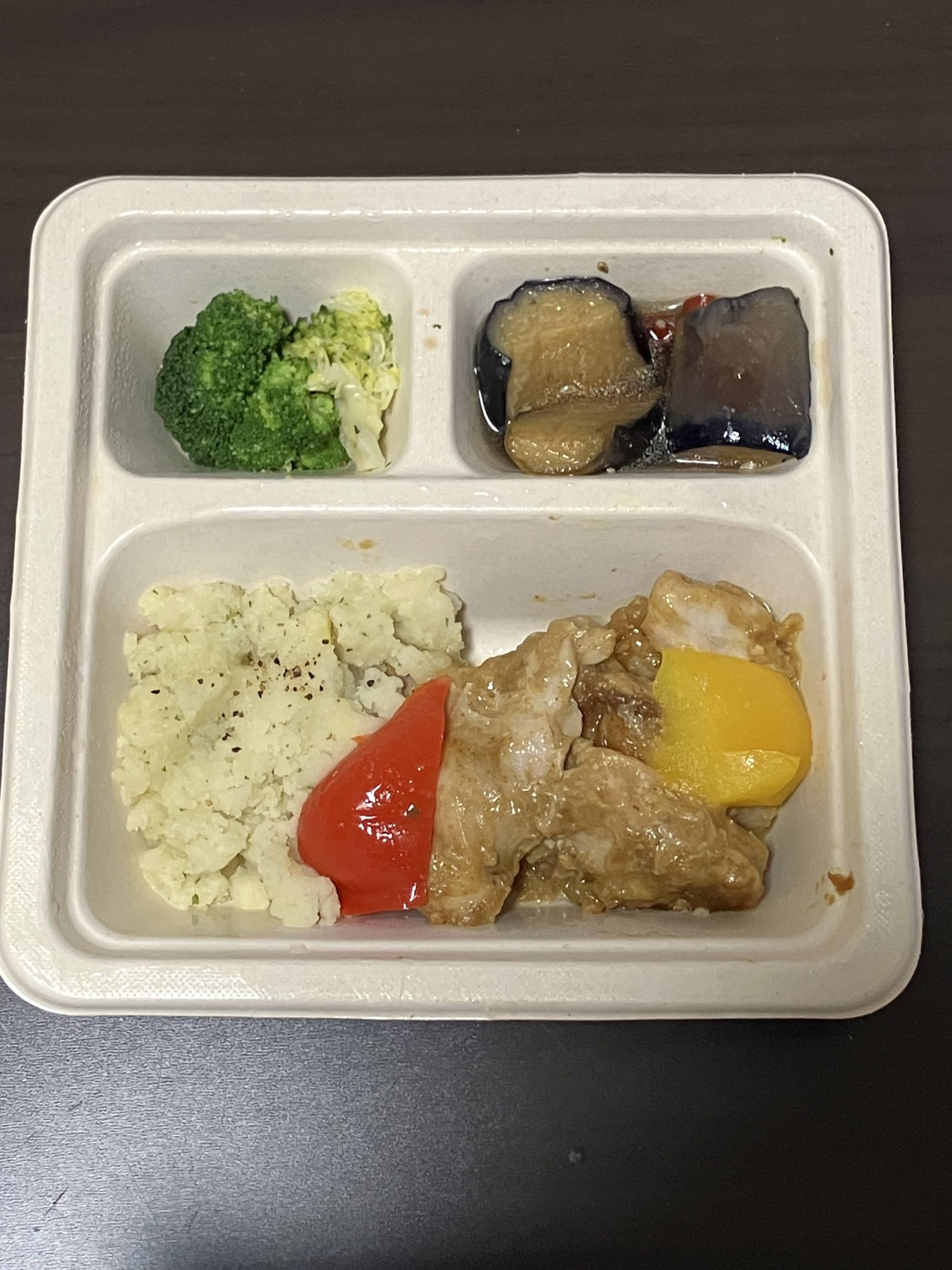味|カレー風味のチキンがたっぷり!副菜の茄子も優秀:★★★★☆